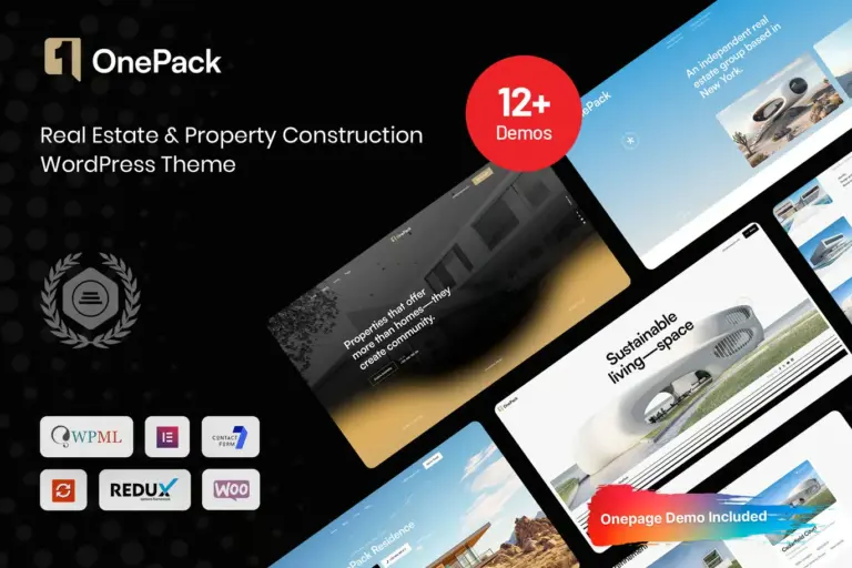 En el sector del desarrollo inmobiliario y la construcción, la solidez de tu estructura lo es todo. OnePack – Real Estate & Property Construction WP es una solución web integral diseñada para funcionar como los planos maestros de tu presencia digital. Este tema combina la elegancia necesaria para vender propiedades de lujo con la robustez requerida para presentar grandes proyectos de ingeniería y obras civiles.